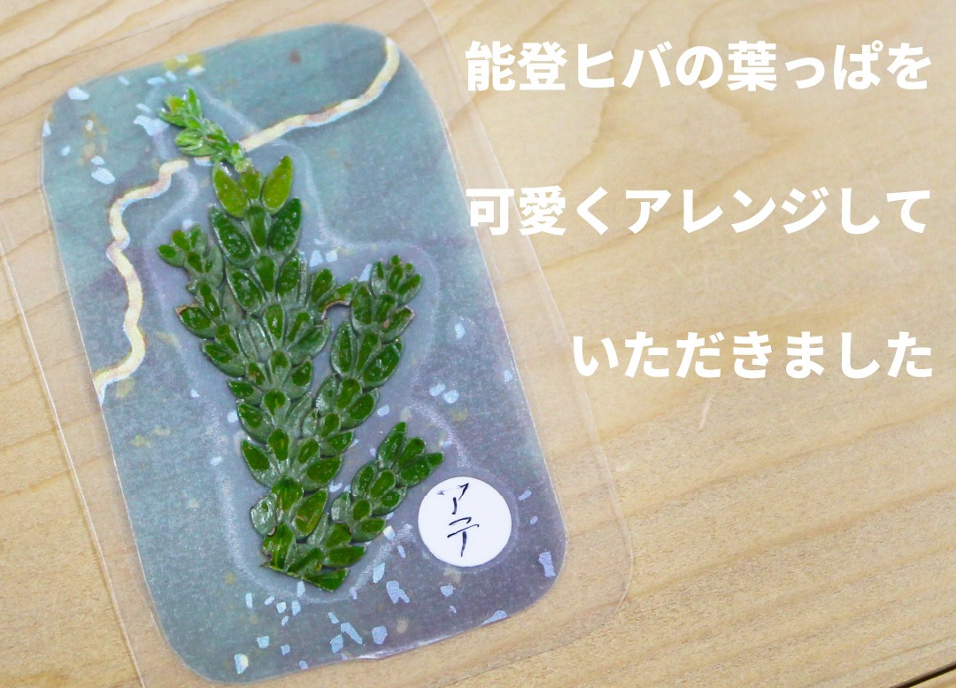 能登ヒバの葉っぱをお財布に入るサイズに可愛くアレンジして持ってきてくれました🌿⋆*