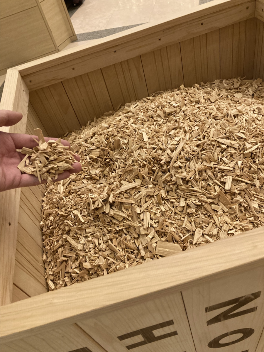 ウッドチップから広がる能登ヒバの優しい香りに包まれながら、