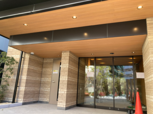 階段周りに、もえんげん®すぎ不燃集成材(趣)シリーズ格子材、