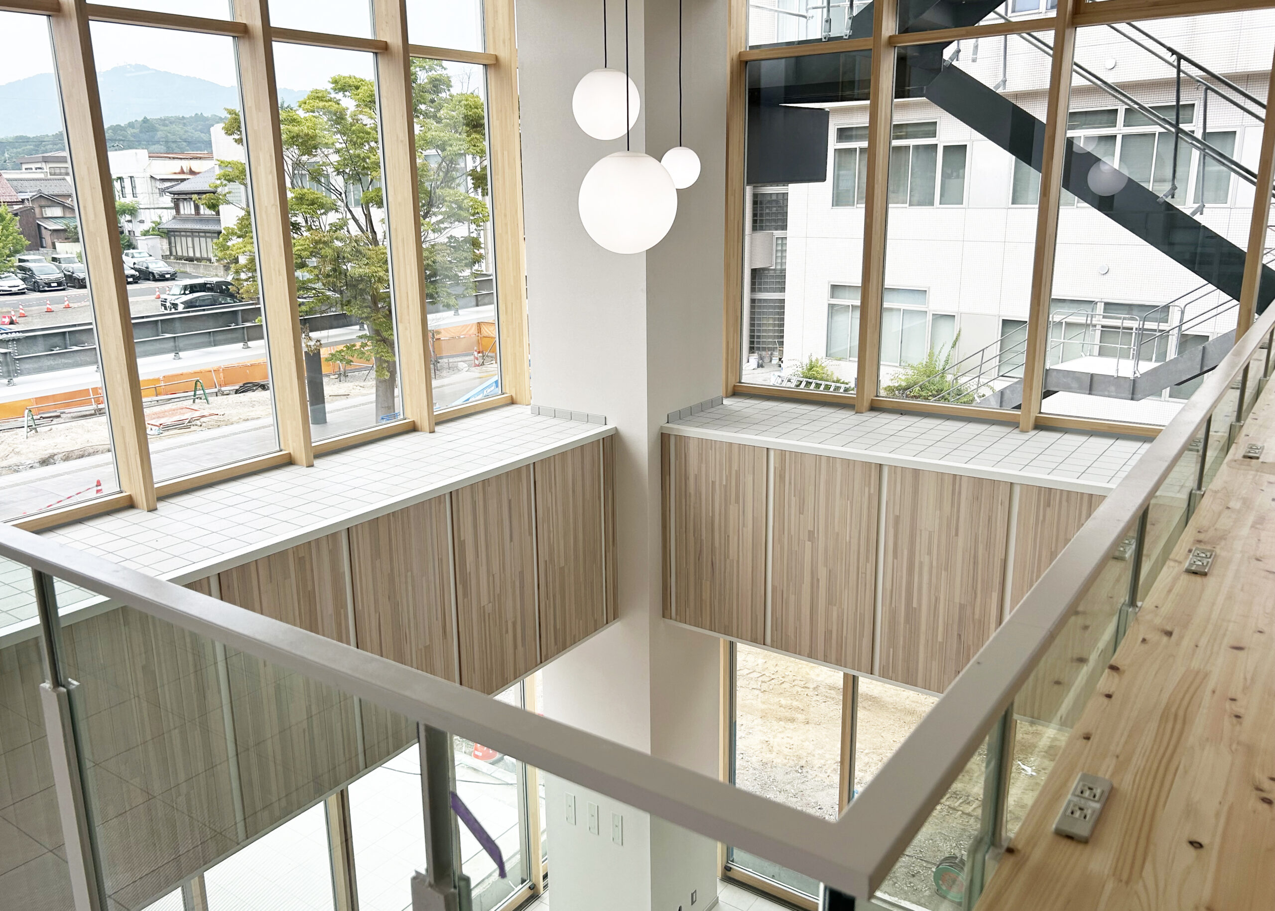 地域産「京都の木」認証材にて製作し、1Fから3Fまで