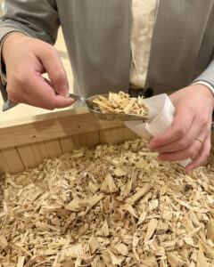 実際に能登ヒバの香りを体験していただくと、その爽やかで心地よい香りに皆さま驚かれていました。